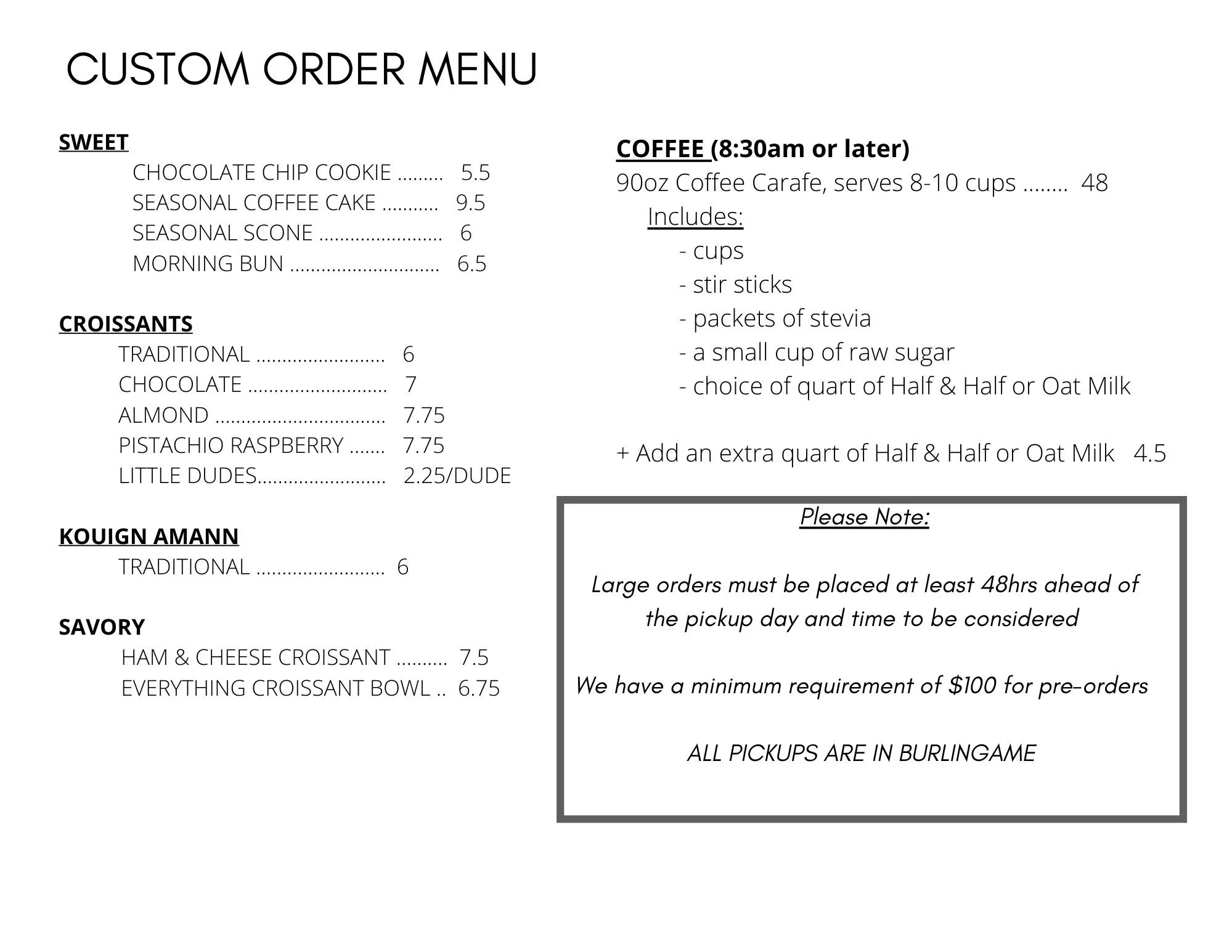 Custom Pre-Order for Pickup